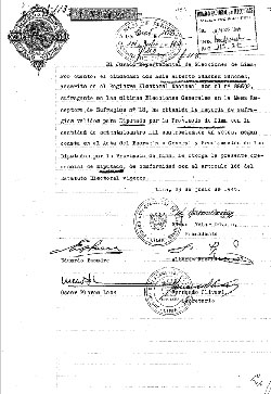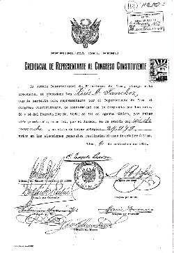 1931-1936 Credencial de Representante al Congreso Constituyente 1945-1950 Credencial de Diputado por Lima 1963-1968 Credencial de Senador por Lima
