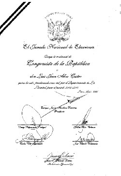 2001-2006 Credencial de Congresista de la República  2006-2011 Credencial de Congresista de la República