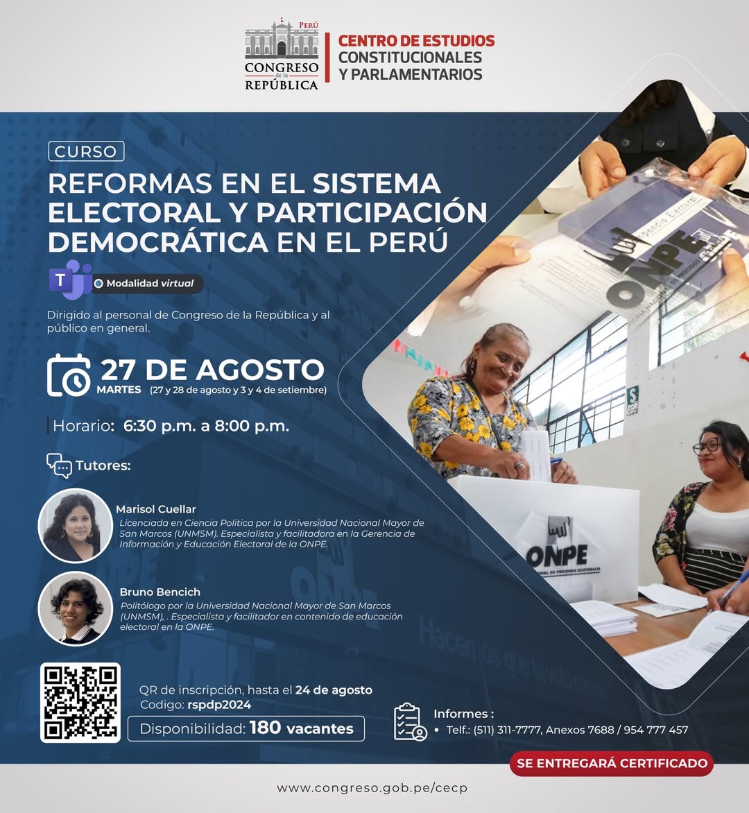 CURSO REFORMAS EN EL SISTEMA ELECTORAL Y PARTICIPACIÓN DEMOCRÁTICA EN EL PERÚ