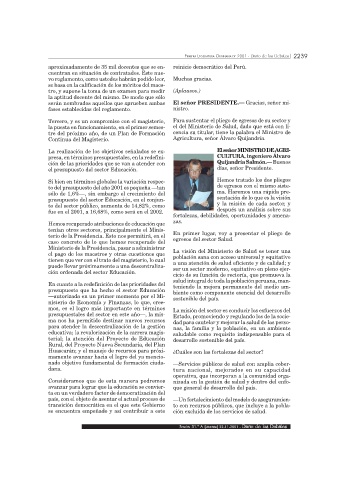 aproximadamente de 35 mil docentes que se en- reinicio democrático del Perú.