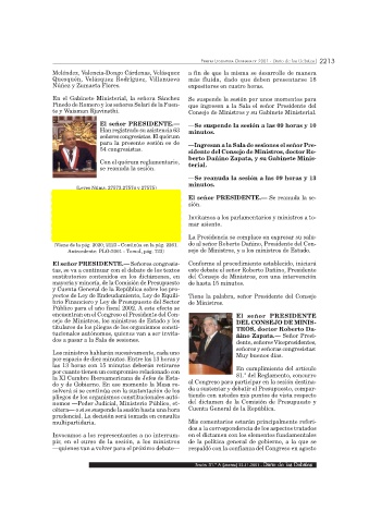 PRIMERA LEGISLATURA ORDINARIA DE 2001 - Diario de los Debates 2213