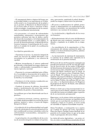 cación de estrategias de atención primaria de sa- tar el pliego de egresos del sector Agricultura.