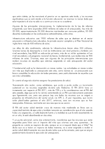 educación a infraestructura educativa, la jornada escolar completa y el Plan Nacional de
