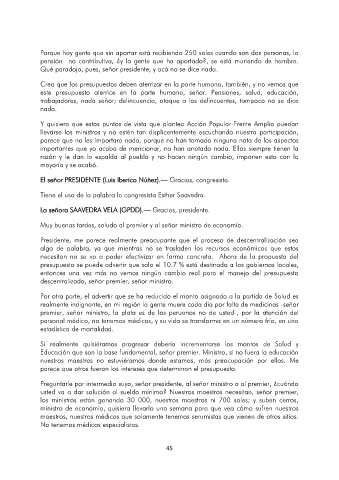 La señora SAAVEDRA VELA (GPDD).— Gracias, presidente.