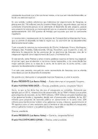Y en este caso concreto, una petición como representante de Arequipa, que se atienda