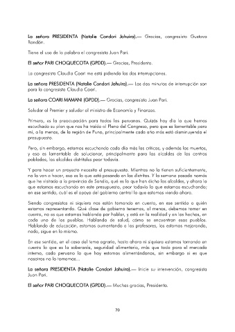 La señora COARI MAMANI (GPDD).— Gracias, congresista Juan Pari.