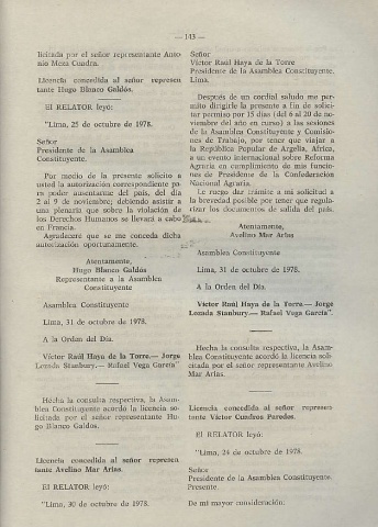 ví.tor Ra¡{ IIáya & la lore- Jorso blea co¡st i luyen ¡¿ rcordó la licencia soli.