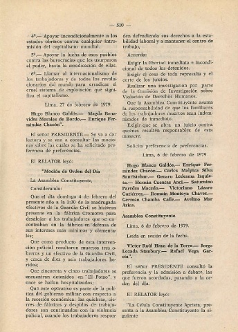 coniraban cn la fábica en defensa d¿ Lima, 6 ¿ó fcbre.o de 1979.