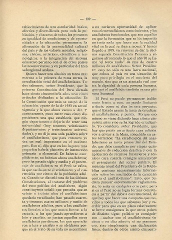 rrje de malfabeios en el Penl se cal.u- nensaj¿ anual de¡ Prcsid¿rte de la Repú-
