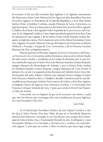 legitima esposa. Nieto por linea paterna del Señor Don José de la Riva Agüero,
