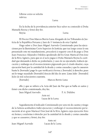 de la Riva Agüero, para que en el acto pague á Doña Manuela Reyna la canti-