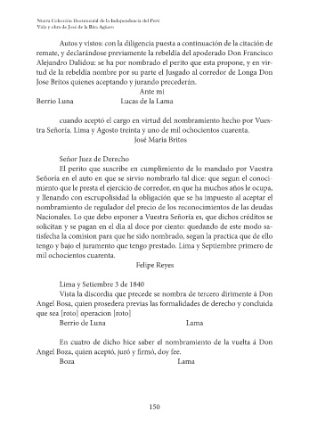 tra Señoría. Lima y Agosto treinta y uno de mil ochocientos cuarenta.