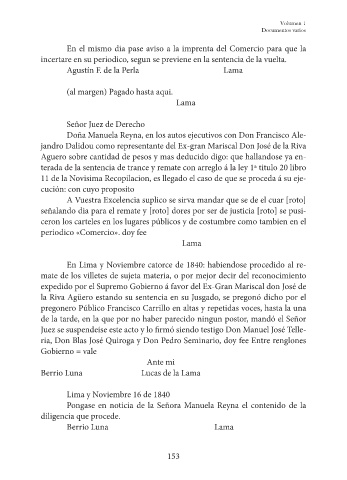 En Lima y Noviembre catorce de 1840: habiendose procedido al re-