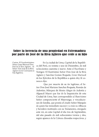 por parte de José de la Riva Agüero que cede a su hijo