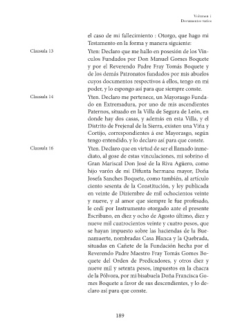 Clausula 14 Yten. Declaro me pertenece, un Mayorasgo Funda-