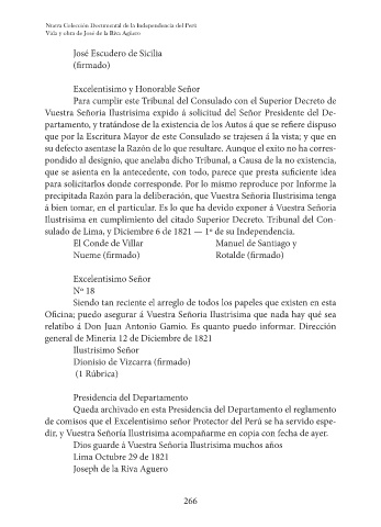 sulado de Lima, y Diciembre 6 de 1821 — 1º de su Independencia.