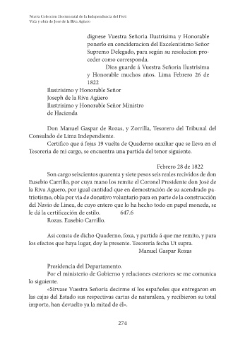 la Riva Aguero, por igual cantidad que en demostración de su acendrado pa-