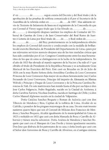Mariscal de los Exercitos del Perú. Este casó en Bruxelas en 26 de Julio de
