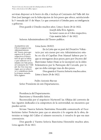 Dios guarde á Ustedes muchos años. Lima y Junio 28 de 1822.