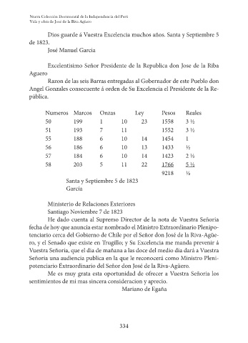tenciario cerca del Gobierno de Chile por el Señor don José de la Riva-Agüe-