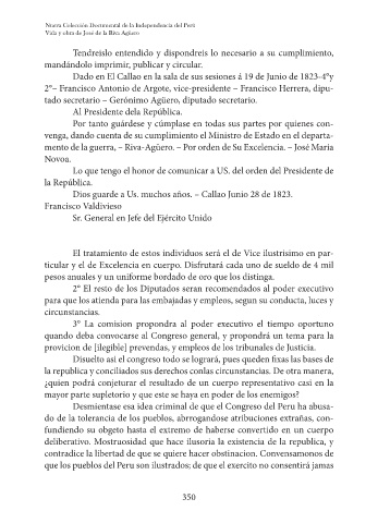 mento de la guerra, – Riva-Agüero. – Por orden de Su Excelencia. – José María