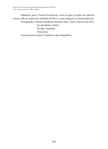 ciones, solo se mueve por utilidad del Perú, y para asegurar su Independencia.
