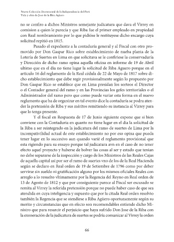 también la Regencia que se atendiese a Riba Agüero oportunamente según su
