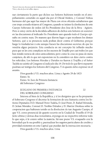 Dios guarde á V.S. muchos años. Lima y Agosto 29 de 1823