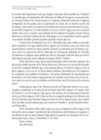 Riva Aguero y por eso no le havia dado el dinero decretado por el Congreso.