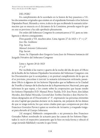 Lima y Agosto 28 de 1823