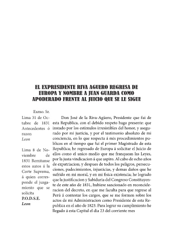 Lima 31 de Oc- Don José de la Riva-Agüero, Presidente que fui de