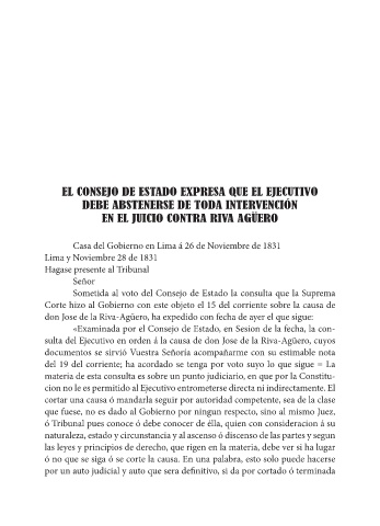 sulta del Ejecutivo en orden á la causa de don Jose de la Riva-Agüero, cuyos