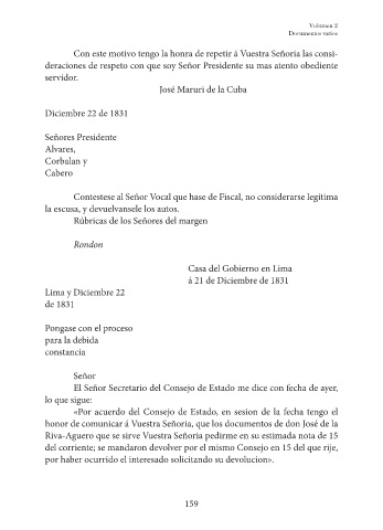 Riva-Aguero que se sirve Vuestra Señoria pedirme en su estimada nota de 15