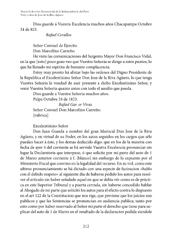 la Republica el Excelentisimo Señor Don Jose de la Riva Agüero, lo que tenga