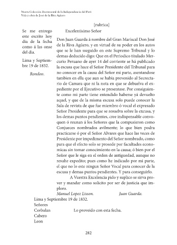 bre 19 de 1832. la escusa que hace el Señor Presidente del Tribunal para