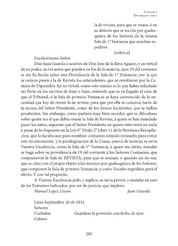 Don Juan Guarda á nombre de Don Jose de la Riva Agüero, y en virtud