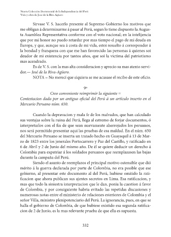 me obligan á determinarme á pasar al Perú, segun lo tiene dispuesto la Augus-
