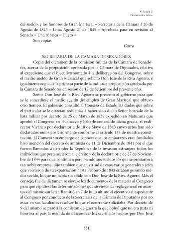 el medio sueldo de Gran Mariscal que solicitó Don José de la Riva Agüero, é