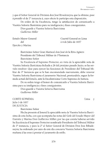 de 3° instancia, y para la 2° al Señor General de Division Don Jose Ribade-