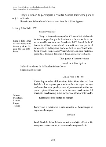 Ilustrisimo Señor Gran Mariscal don Jose de la Riva Aguero