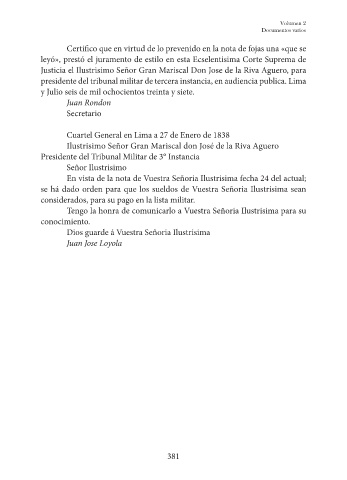 Justicia el Ilustrisimo Señor Gran Mariscal Don Jose de la Riva Aguero, para
