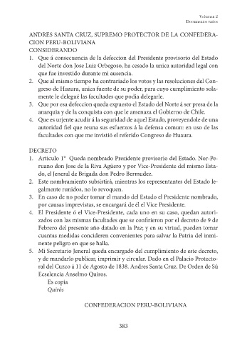 ANDRES SANTA CRUZ, SUPREMO PROTECTOR DE LA CONFEDERA-