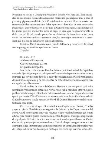 su Patria que hoy nesesita de todo el zelo y la consagracion de Usted para librarla