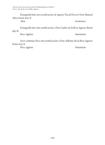 Enseguida hise otra notificación a Don Carlos de la Riva Aguero firmó