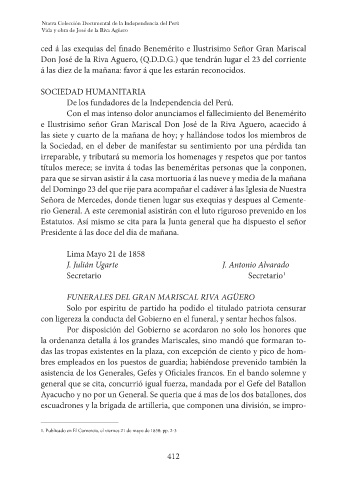Don José de la Riva Aguero, (Q.D.D.G.) que tendrán lugar el 23 del corriente