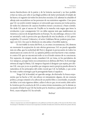 1. Blanco y Azpurua traen una versión del inglés de esta carta, publicada en el Times de Londres, el 9 de mayo de 1824. Dicha versión
