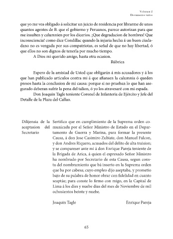 Espero de la amistad de Usted que obligarán á mis acusadores y á los
