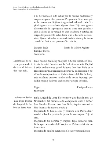 Declarasion de don En la Ciudad de Lima á los veinte y dos dias del mes de