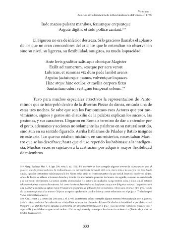 tenía la primera edición. Su traducción es: «Ante el leve salto camina el maestro del coro / Se alza hacia la multitud, si por el aire versa /