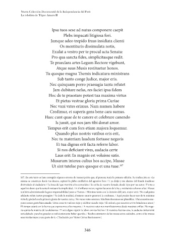 virtud y piedad con la primera gloria de vuestra curia, / No vanos vates seremos. Más bien deseamos ser plausibles. / Para nuestros ma-